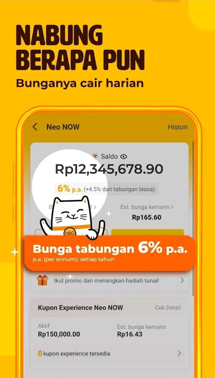 Kantong Terkunci juga menawarkan bunga yang lebih besar daripada Kantong Nabung, yaitu hingga 4% p.a.* Kalau diperhatikan, Kantong Terkunci mirip dengan deposito berjangka.